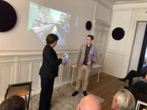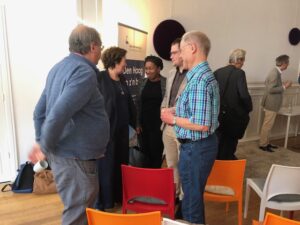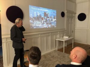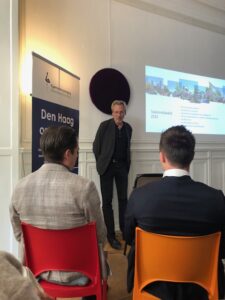 Na deze zeer informatieve presentatie volgde de presentatie Thuis in de binnenstad van Den Haag van Richard Koek, Expert stedenbouw Gemeente Den Haag. Als het ware ‘thuis in een groene metropool aan zee’. Hij lichtte de omgevingsvisie Den Haag 2050 toe, wat Den Haag typisch haags maakt en dat de omgevingsvisie voortbouwt op de typisch Haagse kenmerken. De binnenstad moet richting 2050 een ‘huiskamer’ voor iedereen zijn, waar wordt gestudeerd, gewoond, gewinkeld, gewerkt en gerecreëerd. Het is een gebied waar mensen met verschillende achtergronden elkaar ontmoeten en waar iedereen kan genieten van de vele bezienswaardigheden, winkels, horecagelegenheden en culturele voorzieningen, zoals musea en historische gebouwen. Helaas is er een achterblijvende ontwikkeling van het aantal banen in de Haagse regio. Het aantal inwoners blijft groeien. De verwachting is dat tot 2040 de Haagse regio zal groeien met 5000 inwoners per jaar. Richard constateerde dat de overeenkomsten van punten die in het binnenstadsplan 2033 beschreven zijn ongeveer overeen met het manifest van de Eigenarenvereniging Binnenstad Den Haag. Er zal constant gewerkt moeten blijven worden aan de binnenstad van Den Haag om een levendige, groene en verbonden binnenstad te ontwikkelen en te behouden. Deze presentatie eindigde met het toekomstbeeld van de Haagse binnenstad in 2033 waarin o.a. de voetganger centraal staat, de stevige vergroening van pleinen en grachten is gebeurd en dat de stad een sterk Haags karakter heeft maar toch met een brede mix aan culturen.
