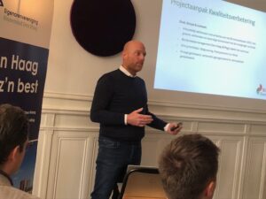 Als laatste presenteerde Rinse van der Woude, projectleider Stichting Binnenstadsmanagement Den Haag en kwartiermaker voor BIZ-verlengingen een Projectaanpak voor Kwaliteitsverbetering van de binnenstad. De aanleiding is het feit dat de ruimte in de binnenstad schaars is en dat deze slimmer georganiseerd moet worden om kwaliteit van de openbare ruimte te verbeteren. De oplossing vraagt nieuwe vormen van samenwerking, draagvlak en ondernemerschap. Ondernemers kunnen initiatief nemen, de gemeente faciliteert, stempelbare projecten. Het doel, de scope & de context worden toegelicht. Alles inhoudelijk verbonden met ambities van het Binnenstadsplan 2033: een groene, verbonden en levendige binnenstad met de voetganger centraal. Het Binnenstadsmanagement Den Haag (BiMag) neemt het voortouw. Drie prioriteiten zijn vergroening, fiets(parkeren) en afval. Alles privaat geïnitieerd, verbonden georganiseerd en stempelbaar gerealiseerd. De focusgebieden worden toegelicht en de aan te vragen Europese subsidie Kansen voor West met de aanpak van Community Led Local Development als instrument. Dit is goedgekeurd door de raad. Het met deze subsidie bevorderen van lokale initiatieven. De eerste stakeholders hebben zich al aangemeld en begin januari 2026 zal de subsidieaanvraag bij KvW ingediend worden zodat eind Q1 2026 het programma kan starten. Er wordt nog naar extra partners gezocht o.a. voor het ophangen van stukjes groen op straat en het verbeteren van fietsplekken. Wanneer de Frederikstraat en de Denneweg hierdoor versterkt en verbeterd worden (Centrum Noord) dan kan het instrument CLLD ook in andere wijken toegepast gaan worden (Schilderswijk bijvoorbeeld). Leden kunnen zich voor lokale initiatieven aanmelden bij Rinse van der Woude. Deze presentatie eindigde met de zin dat de ‘Binnenstad the place to be’ moet worden en blijven.